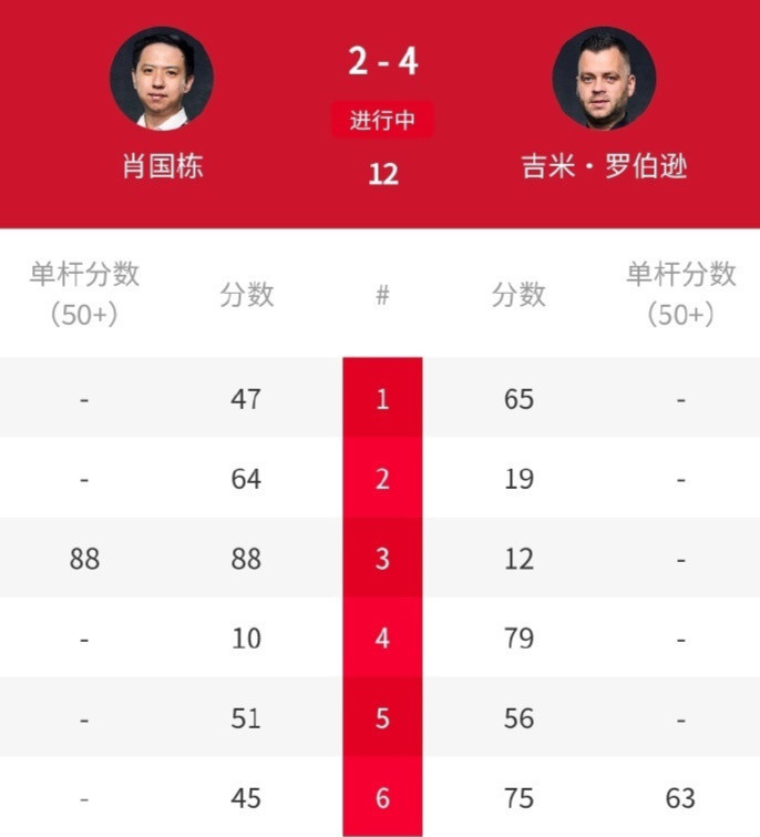 前四局,肖国栋连轰三杆破百(139分、113分、125分)和一杆50+(75分),很快就以4-0大比分教育并获得4个赛点。最终,肖国栋以5-1淘汰这位世锦赛冠军松驰晋级四强。