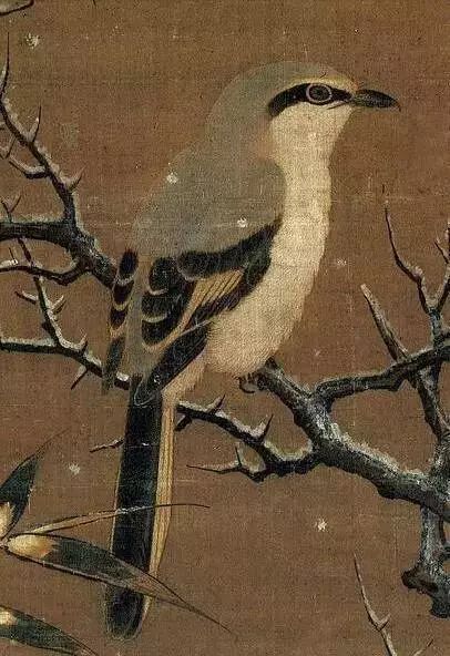 南宋 李迪 雪树寒禽 图轴 灰伯劳
