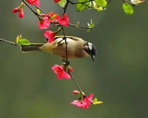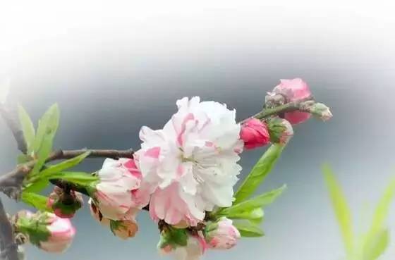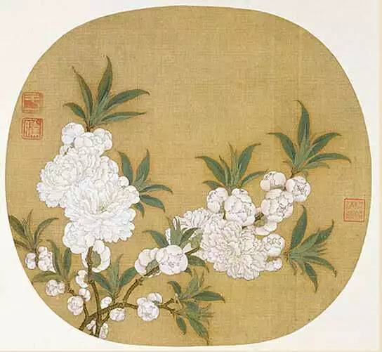 开放的碧桃红白相映,枝桠扶疏,娇柔娇媚。《碧桃图页》天然画面上仅绘桃花两枝,但它的似锦簇簇、苞蕾盈枝则显潜入浓郁的春意。花瓣用多变的细线条勾描后再以白粉或粉红色多层晕染,嫩叶用细红线勾空洞和叶筋,然后填以花青和汁绿。整幅画面赋色精雅,天然无邪,体现了宋代册页画小中见大的风貌!