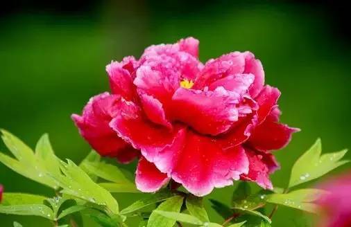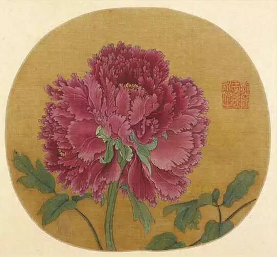 图绘牡丹花后魏紫,花冠硕大,重瓣层叠,娇艳荣华,傍边以绿叶相衬。花瓣档次丰富,刻画入微,先用中锋细笔勾花瓣,然后用胭脂红层层渲染,以浅黄色点花蕊,以花青汁绿染花叶。此图页精工富丽,好意思不堪收,构图丰润,设色艳而不俗。