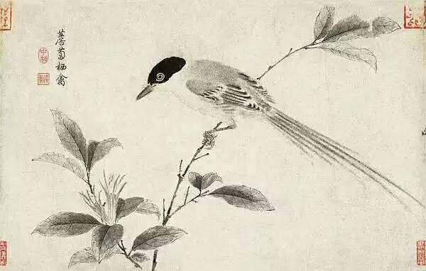 北宋 赵佶 写生珍禽 图卷 薝葡栖禽 灰喜鹊