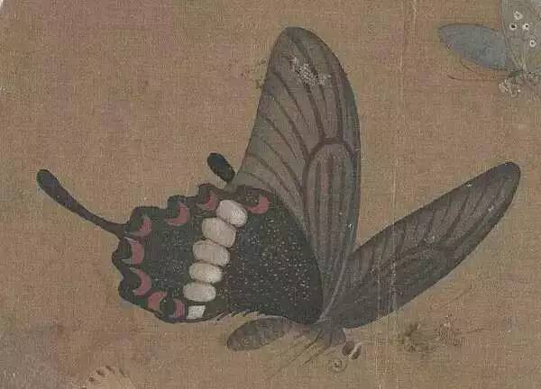 南宋 李安忠 晴春蝶戏 图页 马兜铃凤蝶(丝带凤蝶)细节
