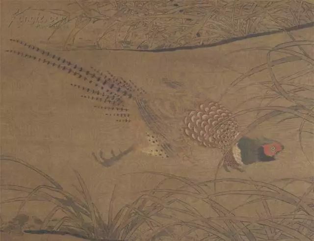 南宋 李迪 枫鹰逐雉 图轴 环颈雉