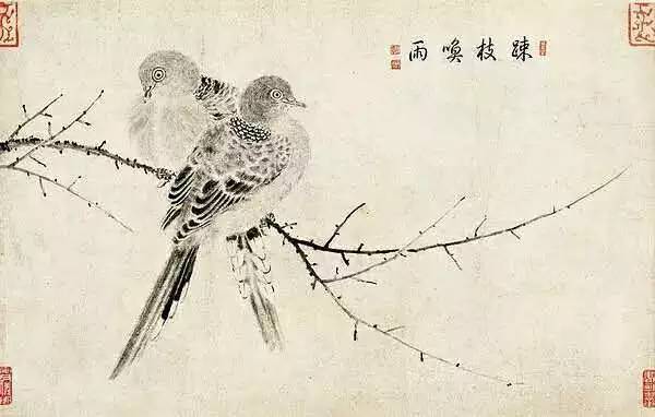 北宋 赵佶 写生珍禽 图卷 疏枝唤雨 珠颈斑鸠