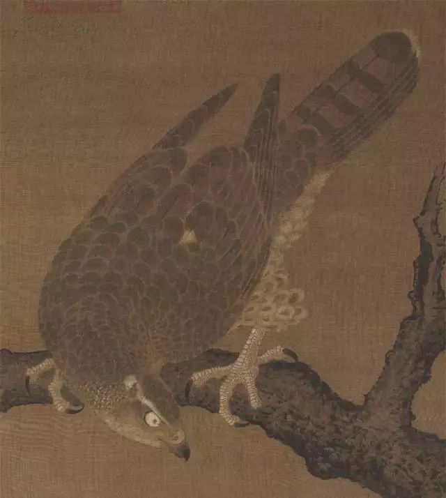 南宋 李迪 枫鹰逐雉 图轴 苍鹰(幼鸟)